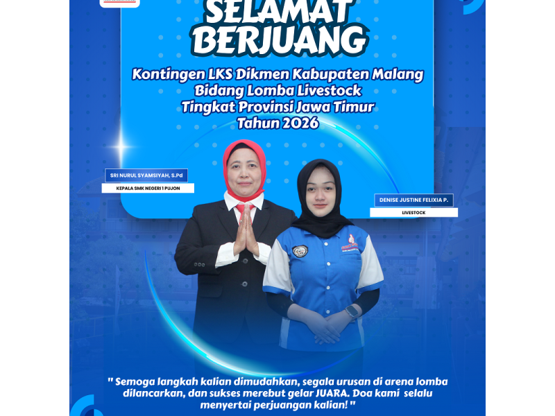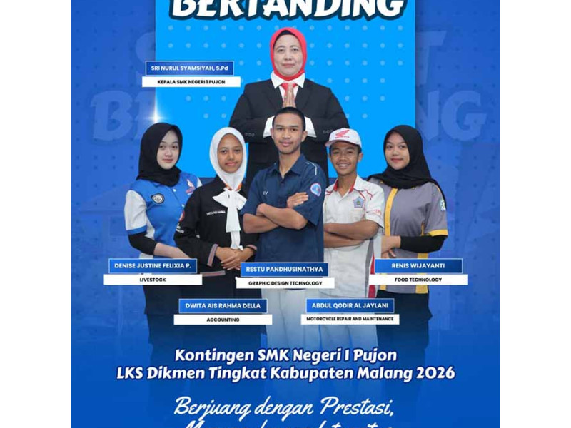 SelengkapnyaKebanggaan kembali menyelimuti keluarga besar SMK Negeri 1 Pujon. Setelah sukses menyelenggarakan LKS tingkat Kabupaten, kini salah satu siswi terbaik kita, Denise Justine Felixia P., bersiap melangkah lebih jauh. Denise resmi menjadi bagian dari Kontingen Kabupaten Malang untuk berlaga di ajang Lomba Kompetensi Siswa...