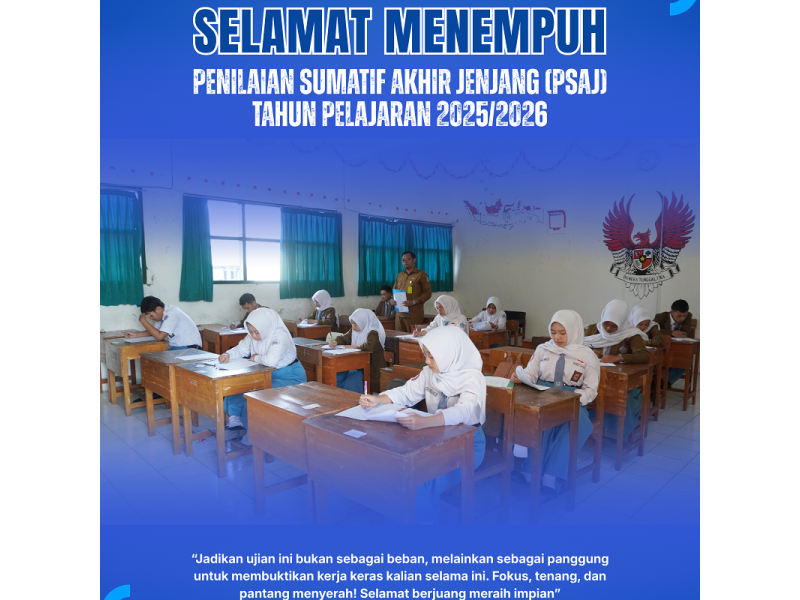 SelengkapnyaSelamat menempuh Penilaian Sumatif Akhir Jenjang (PSAJ) Tahun Pelajaran 2025/2026 kepada seluruh peserta didik kelas XII. PSAJ merupakan tahap evaluasi akhir yang sangat penting untuk mengukur capaian kompetensi sekaligus menjadi momen pembuktian dari segala proses belajar, praktik, dan kerja keras kalian selama tiga tahun...