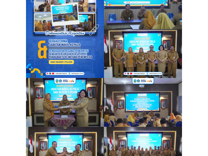 SelengkapnyaSMK Negeri 1 Pujon melaksanakan kegiatan Serah Terima Jabatan Wakil Kepala Sekolah sekaligus Penghadapan Pegawai Pemerintah dengan Perjanjian Kerja (PPPK) Paruh Waktu ke instansi penempatan di lingkungan SMK Negeri 1 Pujon. Kegiatan ini merupakan bagian dari proses administrasi dan kelembagaan...