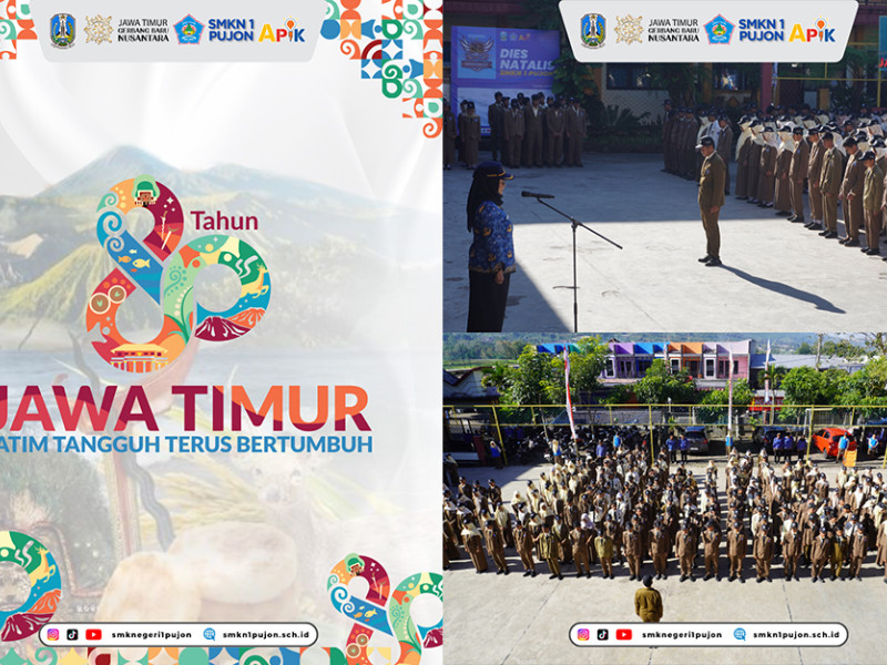SelengkapnyaDalam semangat memperingati Hari Jadi ke-80 Provinsi Jawa Timur yang mengusung tema “Jatim Tangguh, Terus Bertumbuh”, keluarga besar SMKN 1 Pujon turut menyampaikan rasa syukur dan kebanggaan atas perjalanan panjang Jawa Timur sebagai provinsi yang terus menunjukkan ketangguhan dan kemajuan...