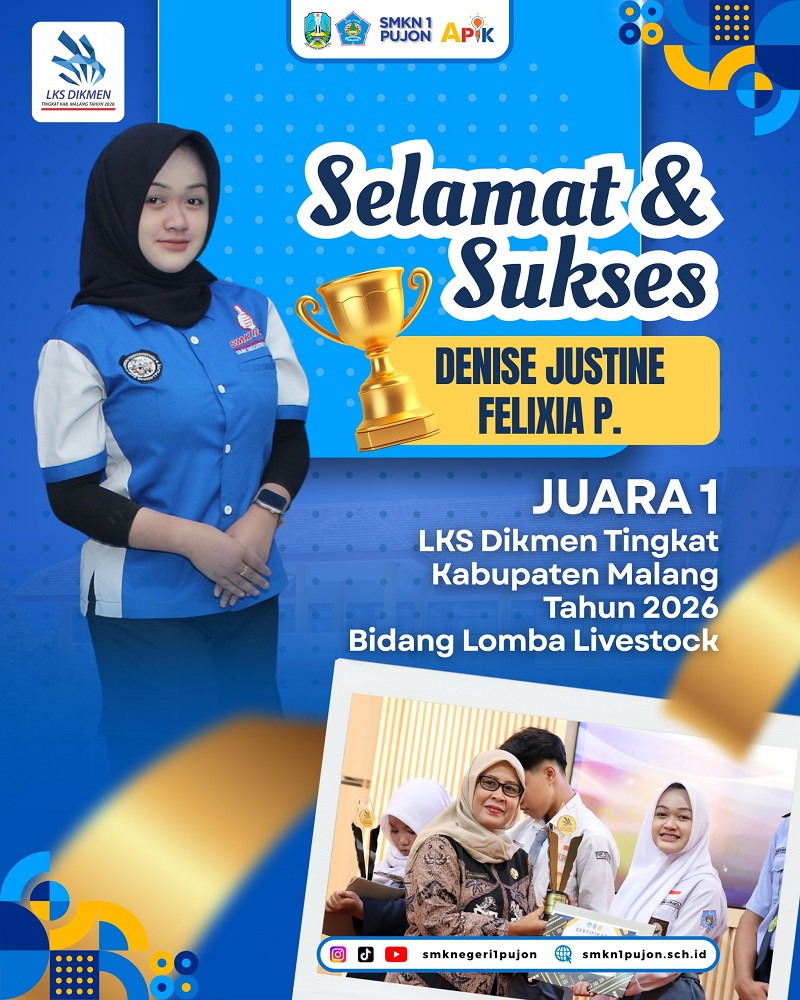 SMK Negeri 1 Pujon. Denise Justine Felixia P., berhasil keluar sebagai Juara